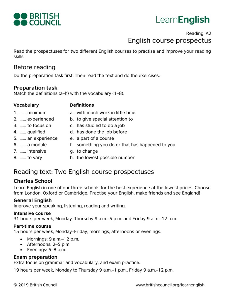 Learnenglish Reading A2 English Course Prospectus Pdf Test Assessment Teaching